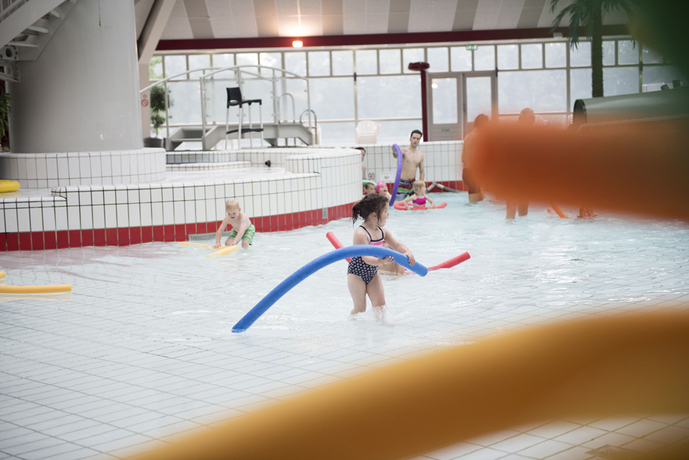 Naast het peuterbad ligt een grote zandbak voor de kleintjes om lekker te kunnen spelen en zandkastelen te bouwen. Hiertegenover vindt u douches, toiletten en kleedcabines. Ook is hier het wandelpad richting de binnenbaden.